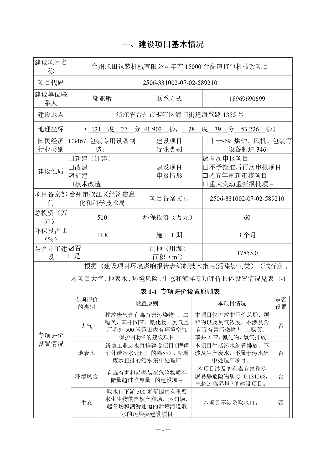 項目位于浙江省臺州市椒江區(qū)海門街道海韻路1355號,總投資510萬元,利用現(xiàn)有廠房擴(kuò)建高速打包機生產(chǎn)線,建成后全廠產(chǎn)能達(dá)15000臺/年。